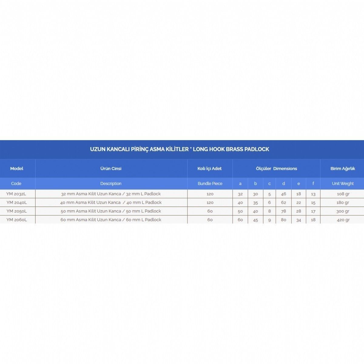 Yuma Uzun Kancalı Pirinç Asma Kilit 32 Mm